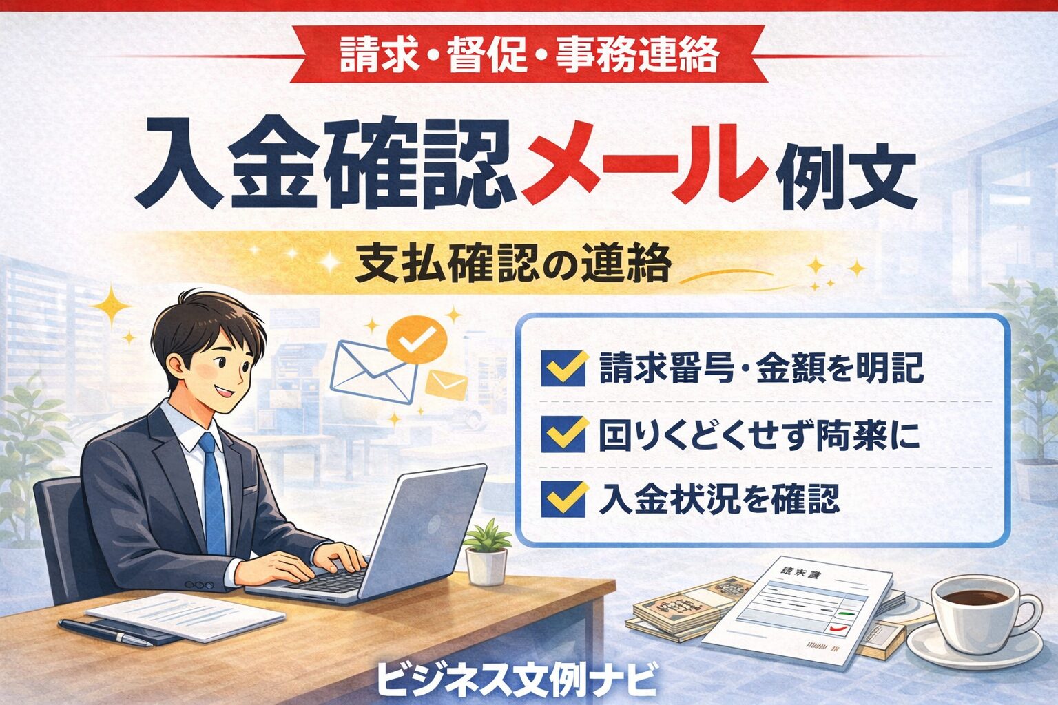 入金確認メールは「確認内容」と「必要な次の対応」を明確に伝える 入金確認メールは、入金の有無や支払状況を確認するための…