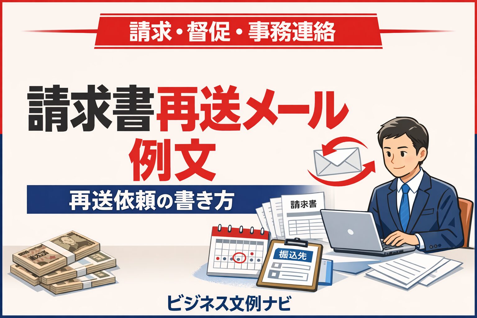請求書再送メールは「再送理由」と「請求情報」を簡潔に伝える 請求書再送メールは、送付済みの請求書を改めて送り直す際に使…