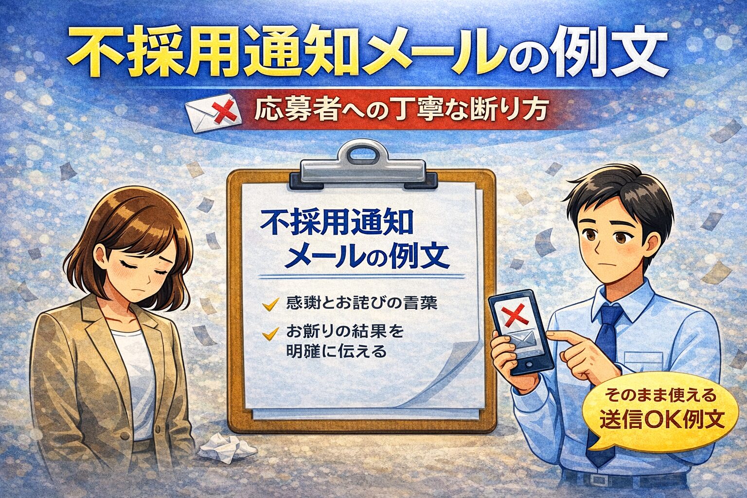 この記事では、不採用通知メールの基本構成、丁寧に断る書き方、実務ですぐ使える例文をまとめて紹介します。